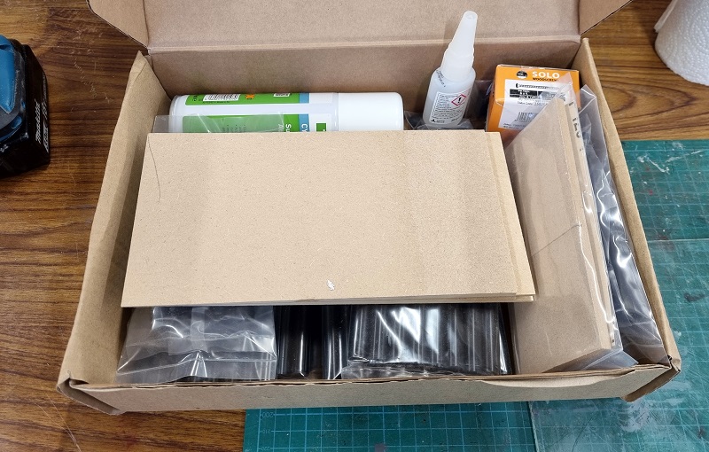 In the box, you get 3D printed pillars ranging in size for the first level base kit, regular pillars, pillar caps, clips, superglue, superglue setter & cable ties. The box of screws in the photo are not part of the helix kit, they’re for fixing down the baseboard tops.