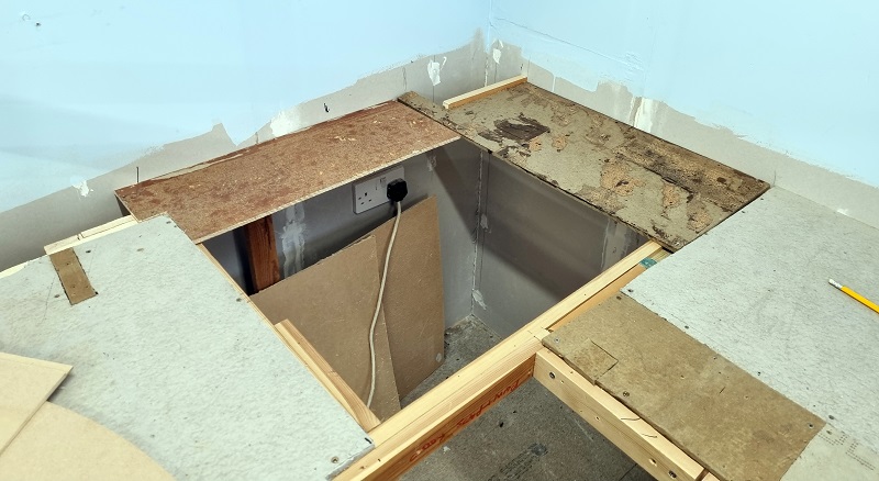The support needs to be under the pillars of the helix and as long as it’s flat it doesn’t really matter what it’s made from. I was able to use the offcut material to make a flat surface, instead of buying new timber. The important thing to note is the hole in the middle, which is crucial as once the helix starts going in you won’t be able to reach the backtracks without it.