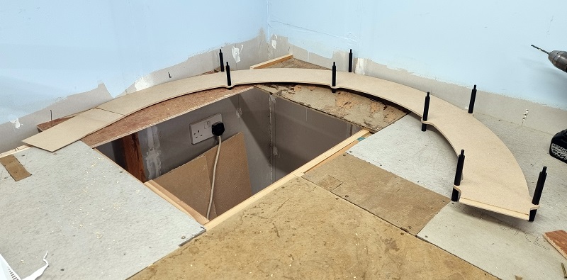As I said at the beginning, the helixes are larger than the baseboards and although my customer had cut holes in their benchwork, extra support was going to be needed.