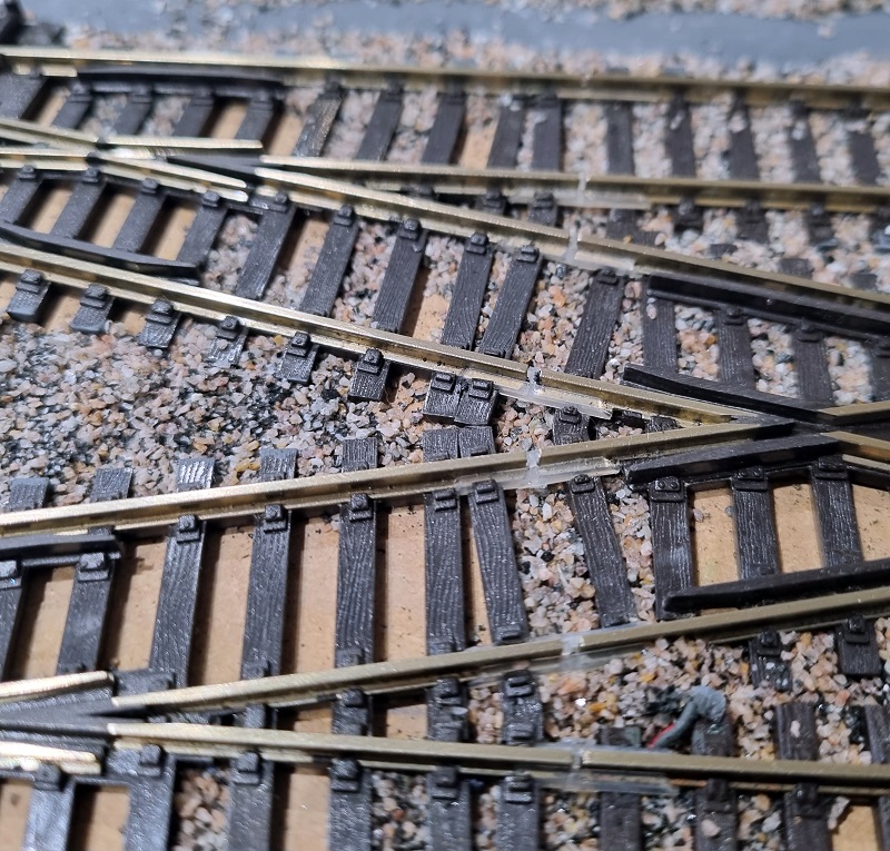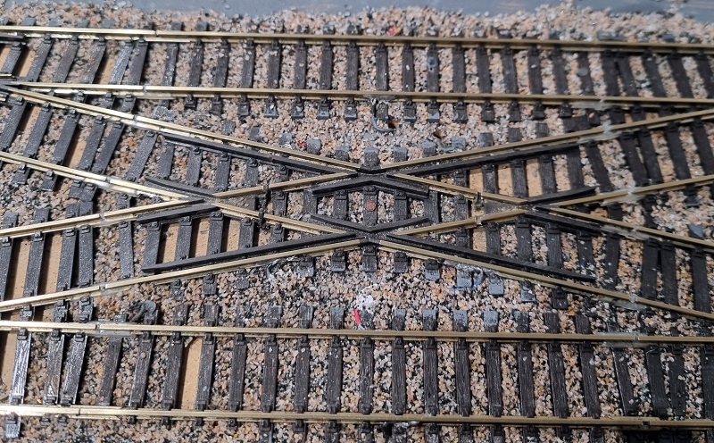 My customer has several of these crossings, the one below is at a major junction between four double slips. To solve the issue of trains shorting on this crossing I’m going to upgrade it to work like an Electrofrog crossing, just without the metal frogs.
