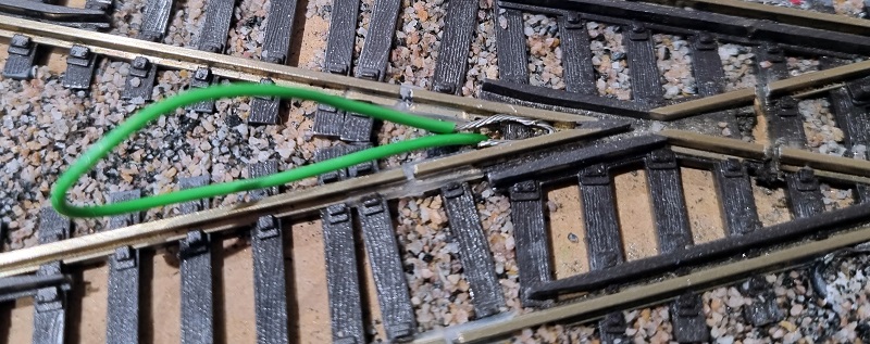 The stripped wire can then be pushed into the web of the rail which is below the railhead and out of the way of any passing trains. The wire needs to be in contact with both rails.