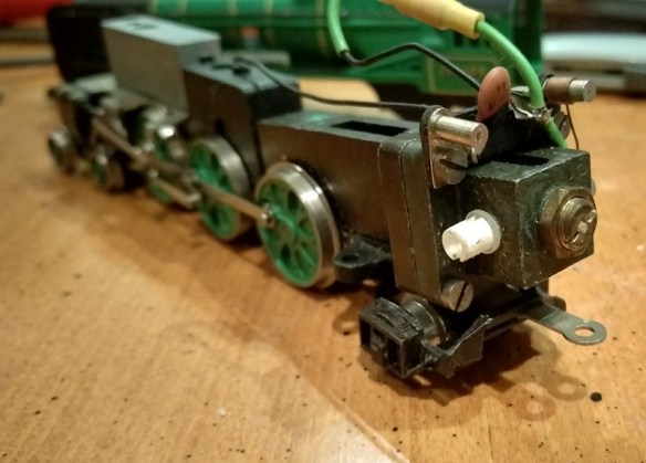 One of their main advantages is they’re all metal, making them very heavy. This gives them a lot of tractive effort compared to models produced in later years. The mechanisms are simple but well-built which means most of them are probably still running well. However these were all designed well before the concept of DCC came along so the motor wasn’t isolated from the chassis. In fact one of the motor brushes is connected directly to the chassis which makes converting these to DCC a problem.