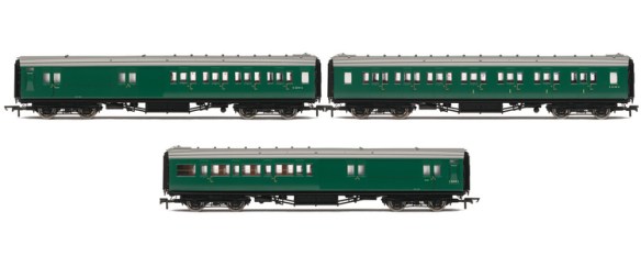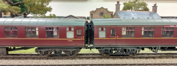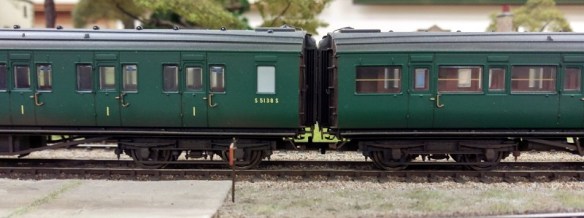 These couplings were originally developed for use on the beautiful new model of Bournemouth West. So a good set of coaches to test the new couplings on is Hornby’s British Railways Somerset & Dorset Maunsell coaches, as they would have been common in this station.