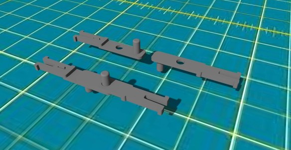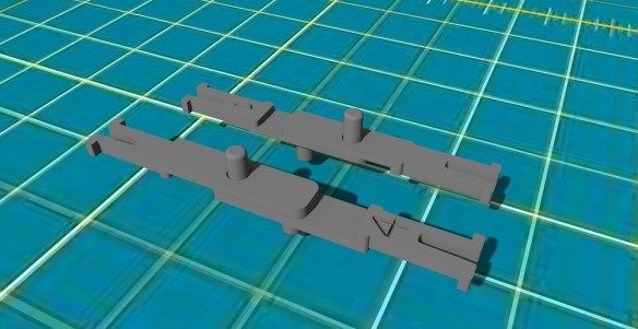 The initial test prints were done in Shapeways White Strong & Flexible material. I chose this because it’s the cheapest material they do. I’ve also used the Strong & Flexible material, instead of my normally prefered Frosted Detail plastics, as these couplings don’t need any fine detail. As they are hidden they simply need to function. In the image below you can see a set of the white couplings in a pair Bachmann Mark 1 coaches. This particular set turned out to be too short as the corridor connections meet before the pegs could locate into their holes.