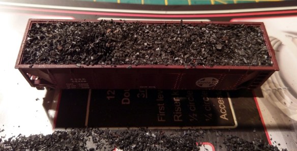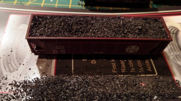 So what do I do? Firstly I pick a coal to use; I’ve been using Woodland Scenics’ Mine Run coal, it’s not actually coal but looks just like it and it weighs next to nothing.