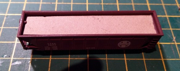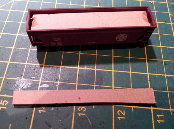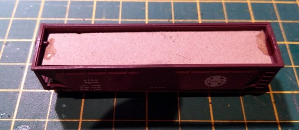 The card wants to be set down from the top rim. This has two functions, it gives me a level to work from and saves me filling the whole car with coal.