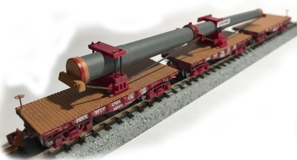 Several weeks ago I posted about the N Scale Architect’s new kit for a set of Pennsylvania Railroad F22 Flatcars & Naval Gun Load. This kit, which was still in development, was announced at the Amherst Railway Society Show 2018, in West Springfield, Massachusetts.