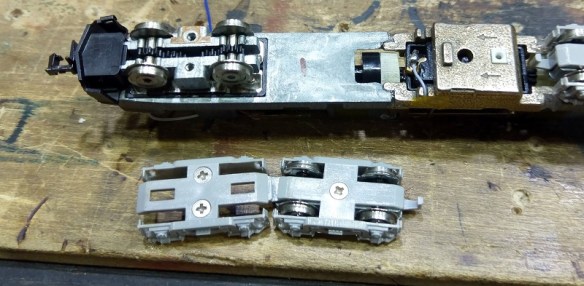 The truck assembly is fairly straight forward. The two screws on the front truck hold both trucks to the locomotive.