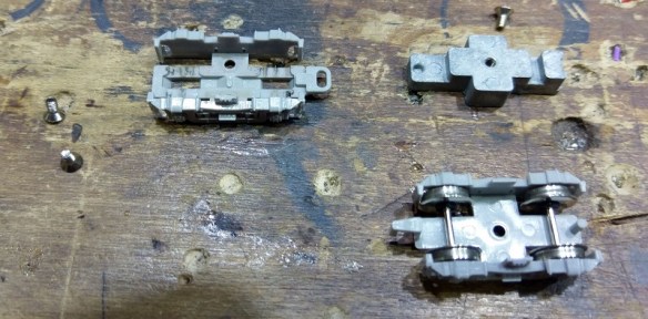 The painting will be covered in a later post as will the re-assembly of the trucks where I will cover changing couplings.
