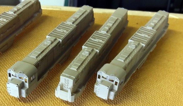 Now that the Poole Model Railway Society’s exhibition is over for another year I can return to my normal activities and this week I’ll be getting back to my step-by-step build of an N Scale A-B-A ready-to-run set of Alco C-855 locomotives. This week will be concentrating on painting the locomotive shells. You can find part one of the build here.