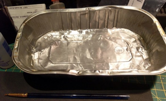 The tools I use are a craft knife, always with a new blade, a modeling paint brush, a pair of tweezers, a metal rule, a foil tray with some water, a sheet of paper towel, Micro Set solution and Matt Cote.