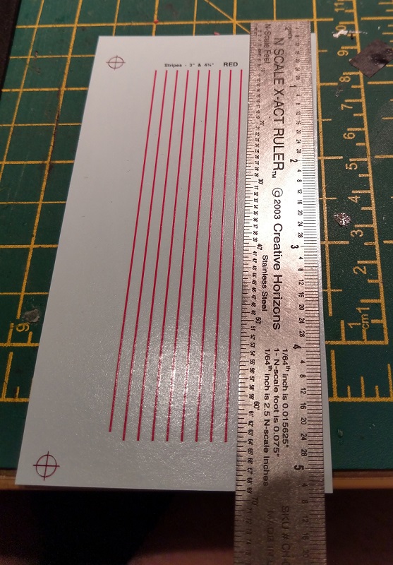 I then place the rule just to the left of the decal and cut the other side. Because the ends had not been cut the decal doesn’t curl up. If there is some of the clear film between the cut and the decal that is okay; if you are too close you could cut the part you want.