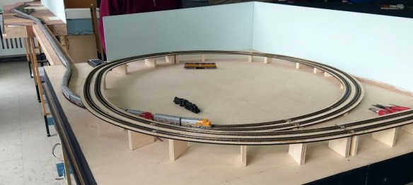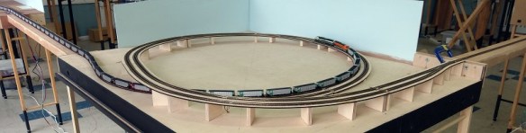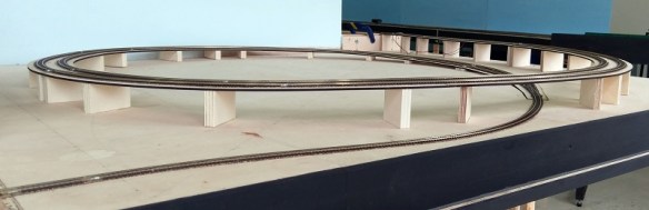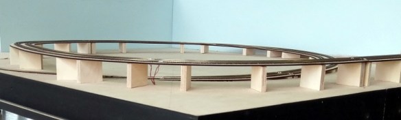 I still need to add a few more supports under the track bed and to do a little more work to smooth the gradient out but for testing purposes the loop is ready.
