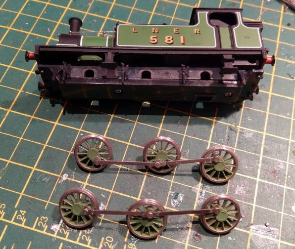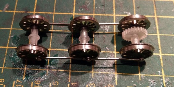 When fitting the new axles it’s vital to get the quartering correct. A description of what this means can be found in my post about ‘Bachmann (Mainline & Replica Railways) Split Chassis Axle Repairs‘.