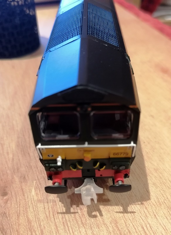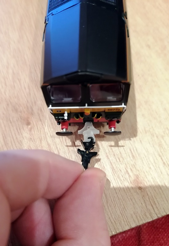I do have one OO Gauge loco to hand with NEM pockets and it’s a Bachmann Class 66. The new dummy coupling clipped right into place and looks good.