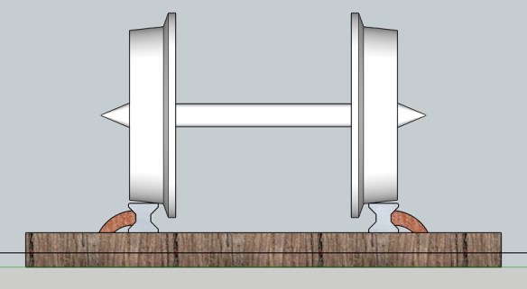 Railway wheels, irrelevant of size and design, all have the same basic parts. An axel, tire, rim, and flange. The tire rides on the rails, and is held in place by the rim. The flange sits inside the tire and the axel holds both wheels together, forming a wheelset.