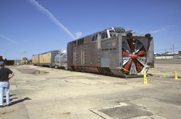A UP Gas turbine with Alco FA & FB helpers sits on a train ready to go, as does a Big Boy on the far track. This is one of the exchange points for other trains leaving the yard, but coal trains only exchange running West to East. I’ll explain why later on.