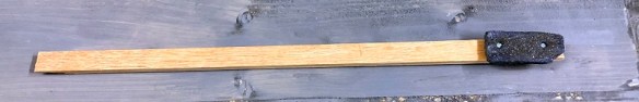 My solution is to screw an old track rubber to a piece of long wood. As the rubber is soft the screws sink in so they don’t stick out of the rubber and therefore can’t catch on anything, but it could also be glued on.