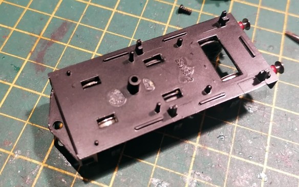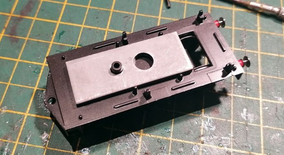 The red you can see through the hole is a stay alive unit. This locomotive is fitted with a Zimo Sound decoder, but even with the stay alive, if the loco stopped in the wrong place it wouldn’t start again without a push.