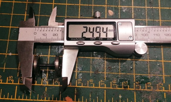 As the original Hornby axle measured 26.35mm I wanted to get as close as I could. Any longer will cause binding and make it harder to fit the new wheels.