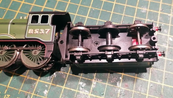 This means although the locomotive had been re-tooled to include power pickups on all the drives, it still only had the pickup footprint of an 0-6-0. For DC operation this is often just fine, but DCC, and in particular DCC sound, the decoder required an unbroken power supply and when you factor in dirty track, dirty wheels, and dirty pickups, the 0-6-0 footprint on this loco simply wasn’t working.