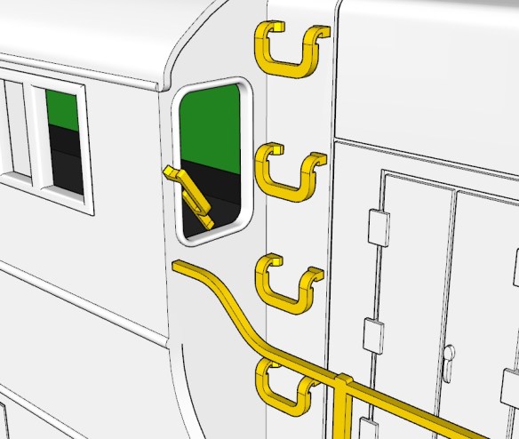 Looking at the model for the HO scale, I keep finding little bits to re-design or change, but I think I’m now very close to ordering the first test print. Having studied a lot of the real locomotives in photos, I realized that different railroads had different features which were quite prominent. So as well as changing the shell to make it available as a Pennsylvania Railroad RT-624 I’ll also change it into a Trona Railway locomotive, for numbers 50 & 51, and maybe more if requested. Also for the Pensy, it’ll be available with the phone antenna, and in the later version, without.