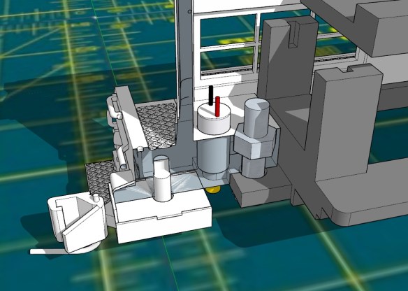 The other hole close by is the off-center mount for the tiny motor that will power the Kadee uncoupler. This was a tight fit but went in exactly as planned, although I’ve now added a little more tolerance. I think the reason for the tight fit here was 3D print residue inside the hole, but it’s nearly impossible to get into the hole from inside the shell to clean it out so increasing the size was easier.