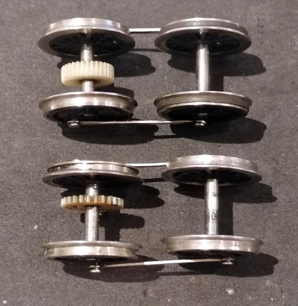 However, constant use over time will always cause parts to wear out and with the 14xx it’s the main drive gear that starts to go. The original chassis had a thicker gear which can be seen at the top in the image below. The thinner gear is for one of the newer chassis introduced under the Dapol line. Interestingly Daopol also moved the traction tire to the other wheelset.