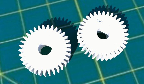To identify the two different gears I’ve marked the side of the gear with the smaller axel hole with a hole in the sidewall as you can see on the gear on the right.