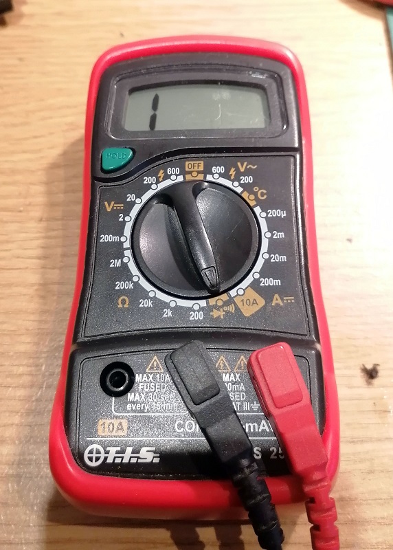 If it appears to be okay, basically not falling out, an electrical test with a multimeter can be done. A continuity test, setting the multimeter to the symbol shown below, will check to see if there’s an electrical connection between the meter probes.