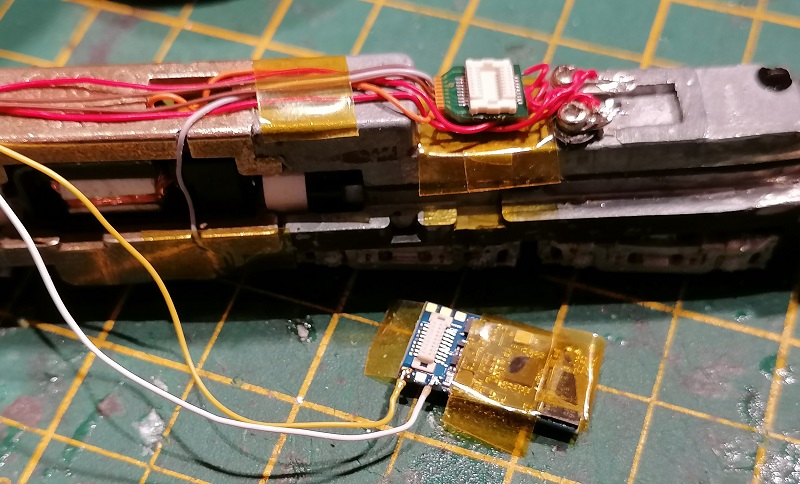 Also in the view above, I made several small changes. At the left of the image in the walkway, just before the step, is the cab signal box opening. For my original 3D model I’d scaled this from a photograph, but I’d made it a bit short. Gus was able to give me some more accurate dimensions. But, as you may have read in a previous post (A Baldwin RT-624 in HO – Part 5) the depth of the cab signal box opening had to be reduced to fit the chassis, you can see the first test print not fitting below.