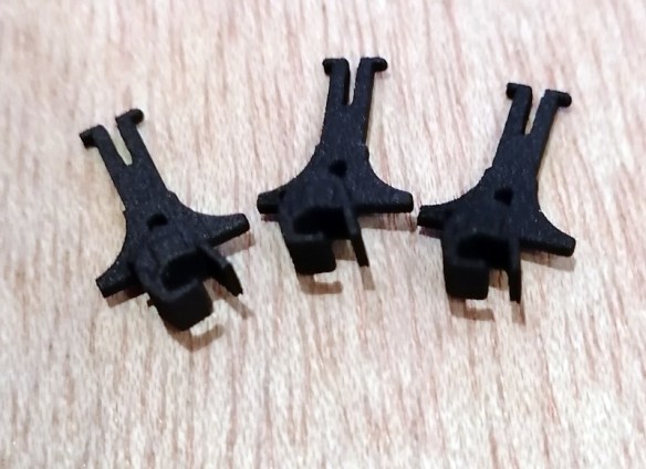 Before I fit the wheels to the new parts I pass a 1.5mm (0.058″) drill through each part. The drill is ever-so-slightly smaller than the hole in the part, so no actual material is removed, but it cleans out the 3D print residue and ensures a good fit. If there’s residue the fit can be too tight and cause the new part to crack.