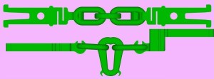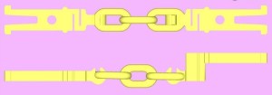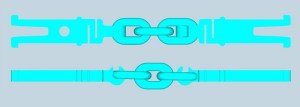 Short length loose 3 Link coupling giving 18mm between NEM sockets. This is designed for early to mid 1940s stock with a high and normal NEM socket keeping the coupling high. This coupling does not work for reversing or shunting movements.