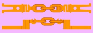 Medium length loose 3 Link coupling giving 18mm between NEM sockets. This is designed for early to mid 1940s stock with a high and normal NEM socket keeping the coupling high. This coupling does not work for reversing or shunting movements.